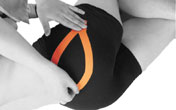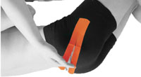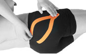 Przyklej bazę taśmy Y poniżej krętarza większego kości udowej.